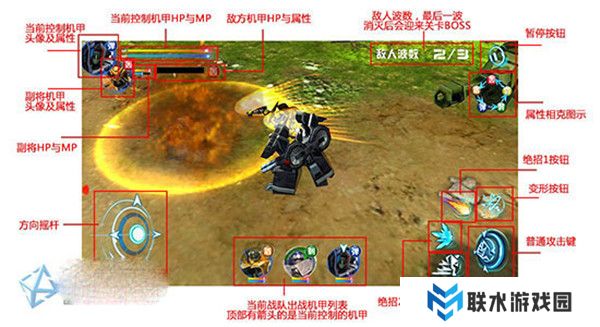 7.所有机甲都具备第二形态,变形按钮可使机甲变身。变形后机甲不能攻击但移动速度较快,按下攻击或绝招键可恢复为人形。灵活运用变形功能可以轻松突破敌人包围,创造有利的战术条件。
