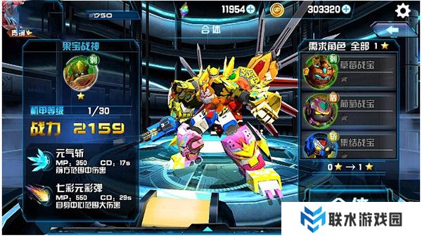 合体所需机甲:草莓战宝、葡萄战宝、集结战宝、蜜桃战宝、小果战宝、香橙战宝和菠萝战宝。
