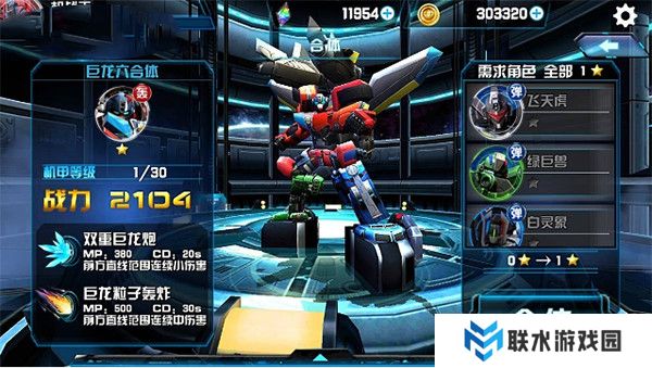 3.机甲强化:机甲分为四个部分进行强化:机甲升级、武器升级、机甲进化、机甲合体。