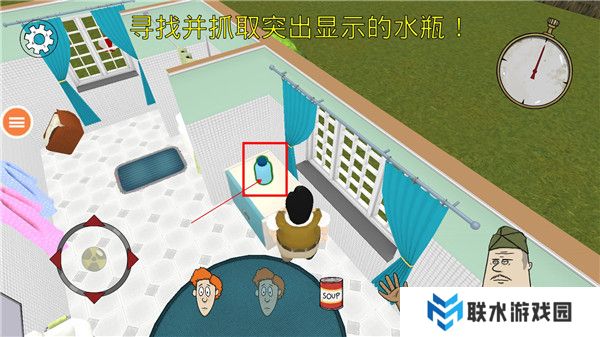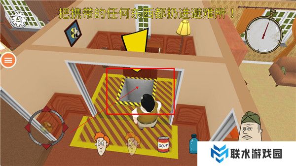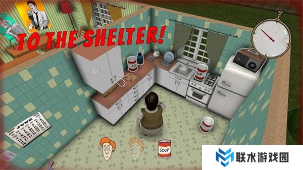 4.20秒内基本都可以找到收音机和妻子的位置。然后,首先去厨房拿水——3到5瓶——然后赶紧去避难所(如果水不够,就拿一些罐头)。然后回到收音机处,带上妻子一起扔进避难所