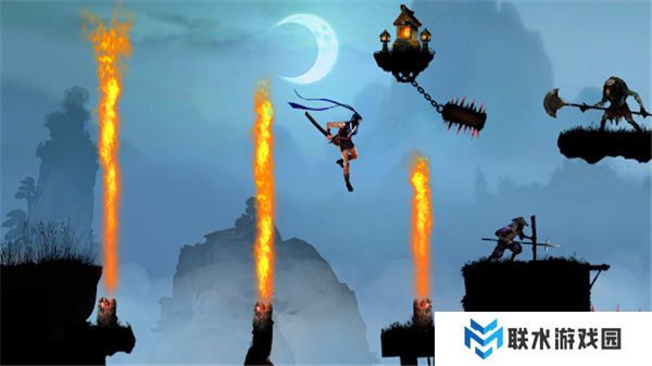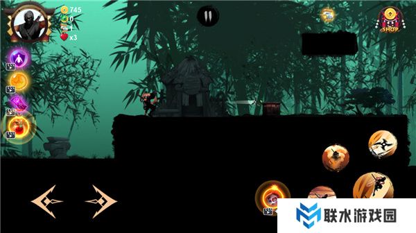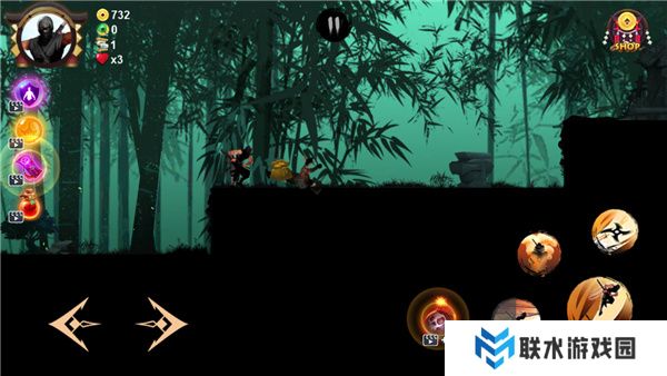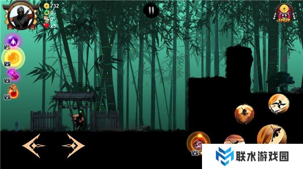 提供了奔跑、跳跃、双跳等忍者经典动作,玩家可以灵活穿越复杂地形,并通过投掷手里剑和苦无等武器与敌人对战,操作简单但又充满挑战。