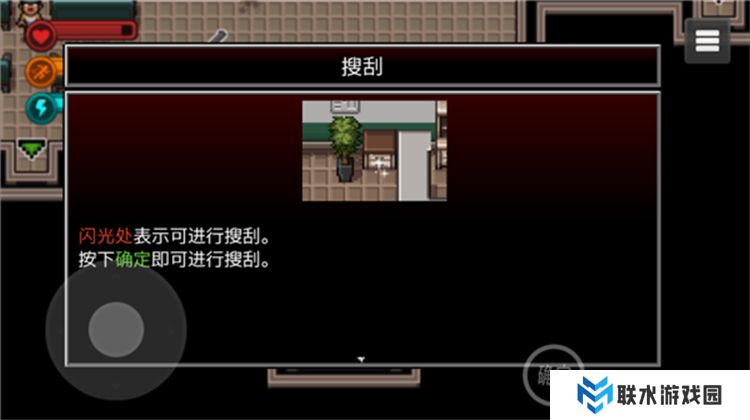 7、当物品旁边出现闪光标记时,表示可以进行搜刮,按下确定键进行操作。