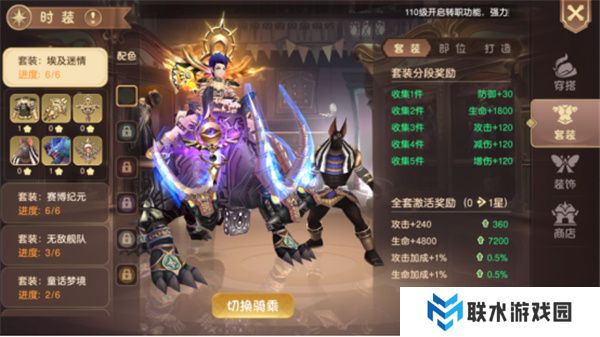 不同套装战力增幅不同,激活套装、升星皆可提高属性,助力实力精进!