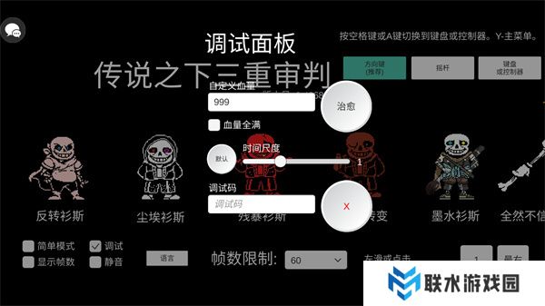 2、点击调试按钮,进入调试面板,对游戏中角色血量与时间流速参数施行精准微调,实现个性化设定。