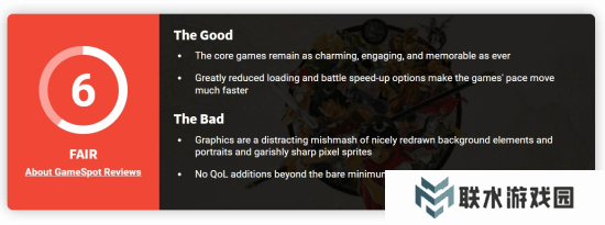 《幻想水浒传1&2复刻版》于今日正式发售,外媒GameSpot发布了本作的媒体评测文章,给出了6分。
