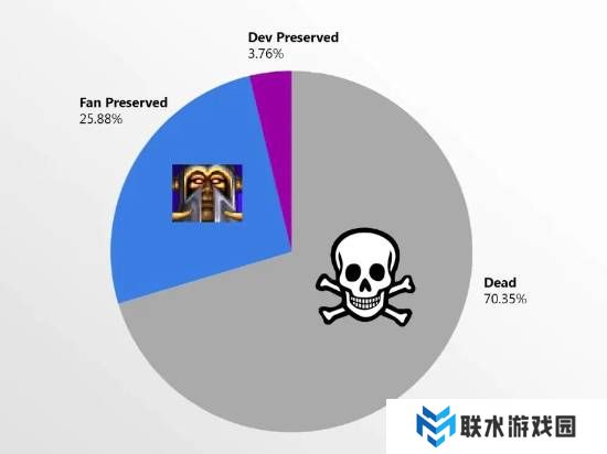 通过对约700款游戏的分类研究(划分为“已无法运行”、“濒危游戏”、“厂商主动保存的在线游戏”及“玩家社区保存项目”四大类别),其中“濒危游戏”占据最**例。为更清晰的呈现现状,研究团队在可视化图表中特别剔除了该类别数据。