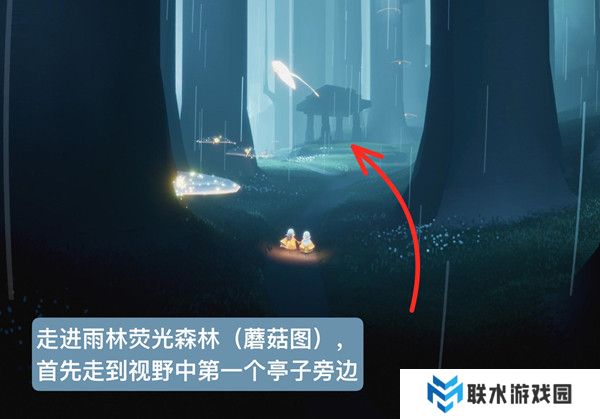 1、要前往雨林的荧光森林区域,也就是被大家熟知的蘑菇图,并走到第一个亭子的位置。