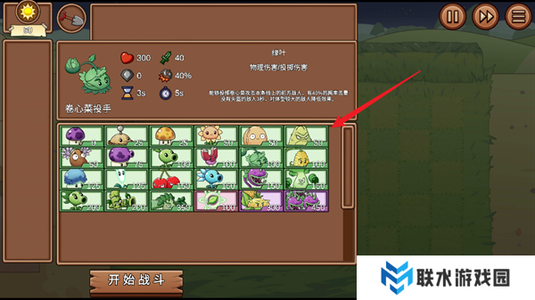 2、你需要从自己的植物卡牌库当中选择出战的植物,并由此来与僵尸之间进行作战。