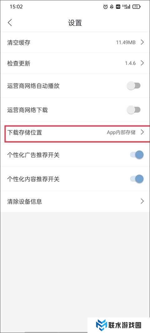 2、在设置页面中,你会看到多个参数选项,找到“下载存储位置”并点击进入。
