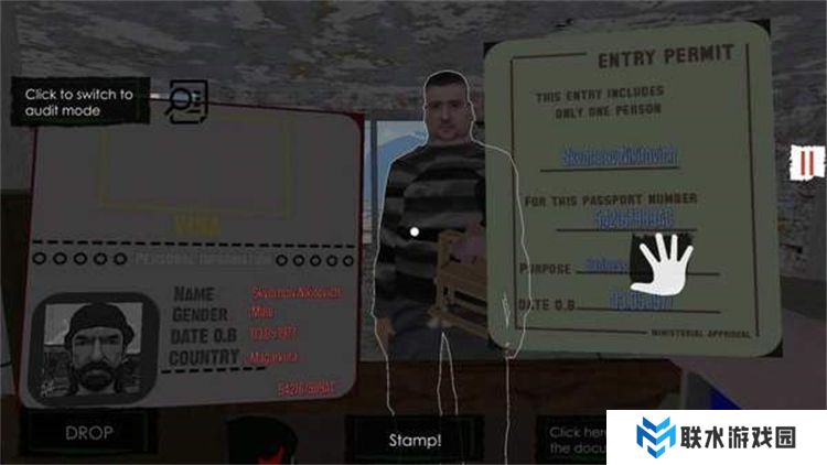 4、在核对证件时,玩家需要比对信息是否一致,包括姓名、国籍、目的地等。游戏中会出现各种情境,比如证件号不符合常规格式或护照信息被盗用等,玩家要注意拒签不符合规定的人员。如果证件信息无误,就可以盖章放行。