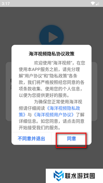 1、先在本站下载免费版本的海洋视频软件,打开后需要同意用户协议。