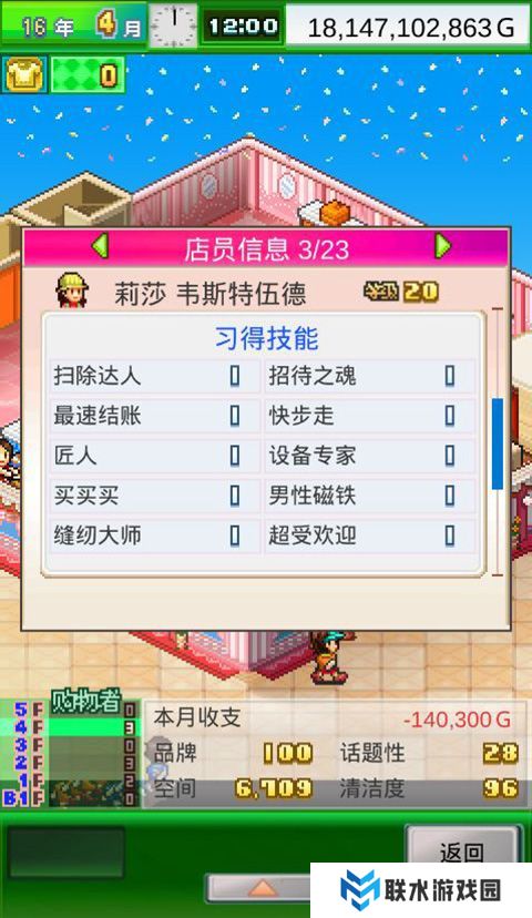 佣金与技能:高佣金店员拥有更多技能,并能通过道具提升技能等级,帮助店铺更好运营。