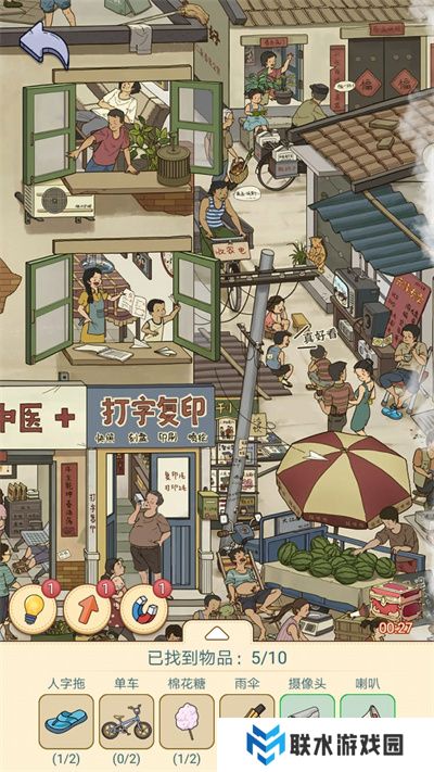 3. 进入挑战界面后,我们需要在场景中找到任务要求的物品,比如摄像头、人字拖、喇叭、单车、棉花糖和雨伞等。