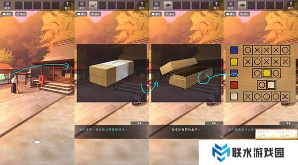 根据提示检查左右两侧的灯笼,右侧灯笼内可取得蜡烛。然后,按照灯笼的图案叠加解开小箱子。