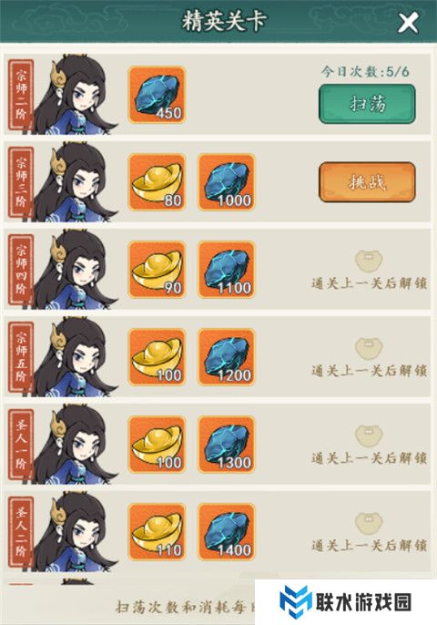 1、主要产出铜钱和玄铁,每日重置,尽量挑战到极限层数。