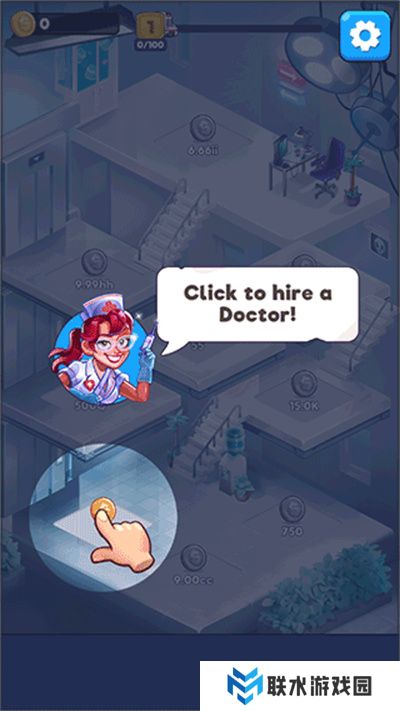 1. 首先下载安装疯狂医院,进入游戏后,首先需要雇佣一名医生。
