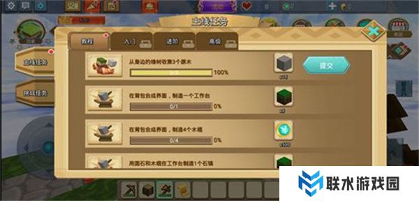 首先,完成系统的第一个任务是至关重要的。任务目标很简单:获得3个橡木方块。只需要对准树干,长按屏幕,树木就会被砍伐掉,你可以从中获取橡木方块。完成后,点击右侧的任务按钮提交,获得丰厚的奖励。你将能获得更多的资源,帮助你向下一步迈进。